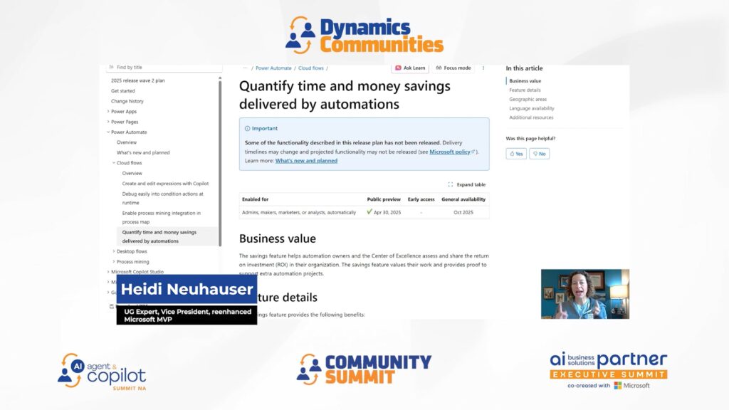 Heidi Neuhauser demos a new Power Automate feature, Quantify time and money savings delivered by automations. Key Takeaways