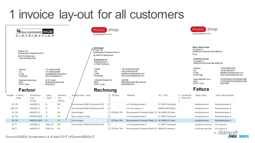 We have added a custom table which contains all the variable information on an invoice or other documents.