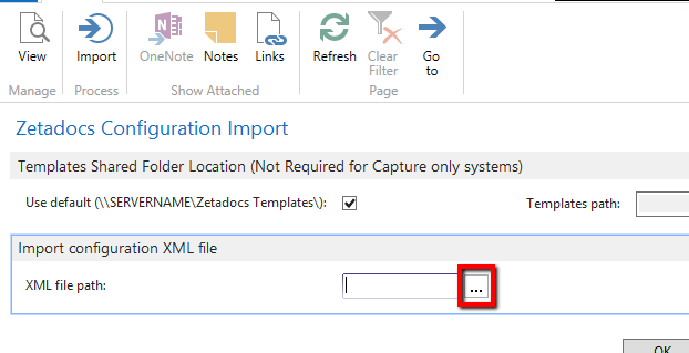 - Select the Standard Configuration XML file that comes with the Zetadocs install: