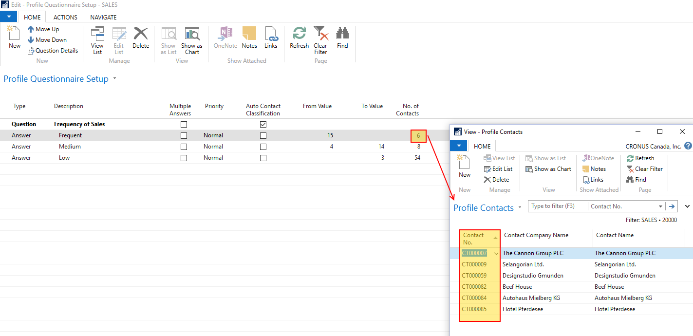 I tried this and it is an interesting solution. Let me clarify if I did it right – I set up a new Profile Questionnaire to classify customers into three groups based on how frequently they purchase from my company:
