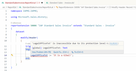 Developers sorry for my ignorance. Microsoft explain clear and to the Definition it should be correct (protected vars are “protected”). However, when extending a report for example I can find only protected variables and not Globals. I am doing something wrong. Any setup in VS Code?