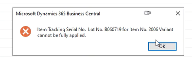 Item Tracking Serial No. Lot No. for Item No. Variant cannot be fully applied