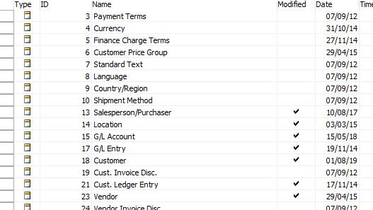 Then if you go to Microsoft Dynamics NAV Development Environment, you can consider objects that were marked “Modified” (not always the case) as having custom modifications.
