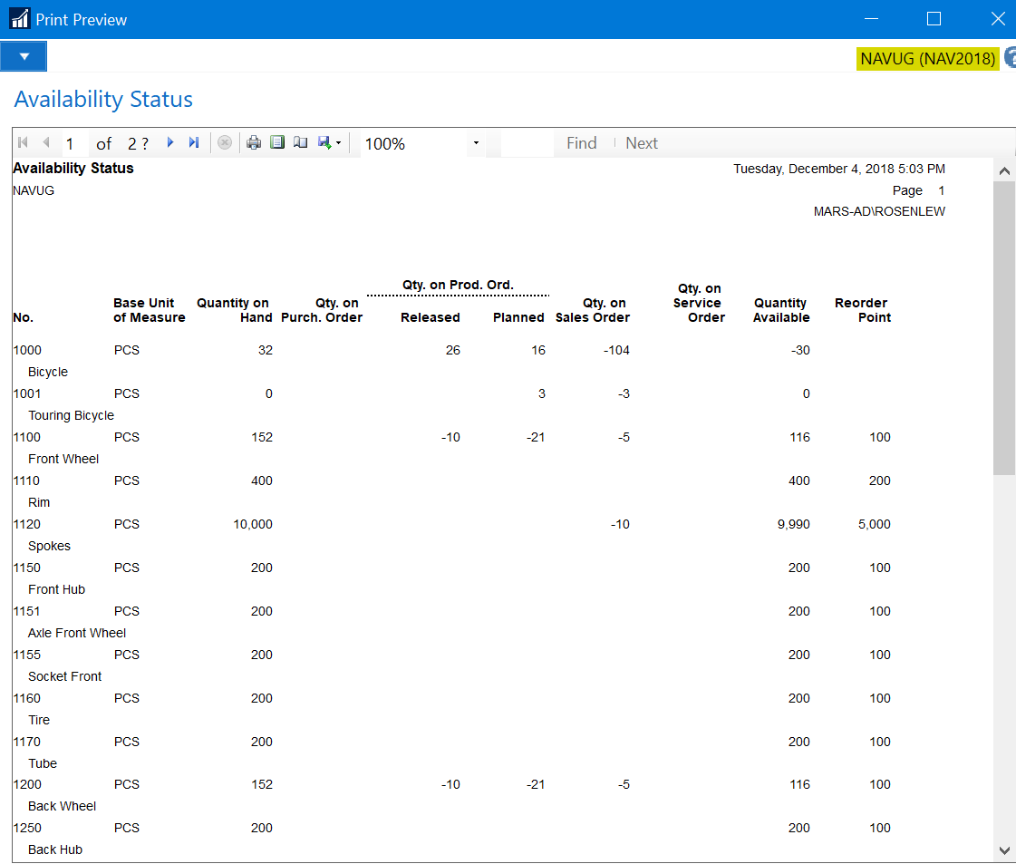 ? If you’re asking in terms of inventory, there’s the Availability Status Report.