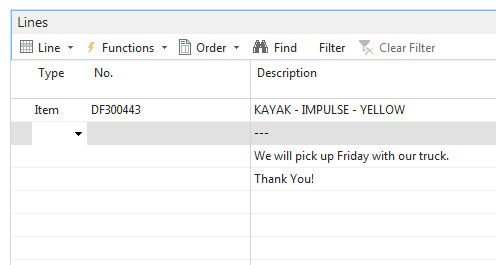 You can also use TEXT codes behind it, so on a type <Blank> you can in the “No.” field look-up to standard text codes.Ā In here you could have a code for the delivery days, as well as a code for standard greetings. The latter just to make it easier for the users to select a code instead of typing the message.