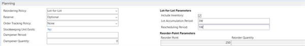 I set it for Lot-for-lot reordering policy, set the Lot Accumulation Period to 3W and the Rescheduling period to 1W
