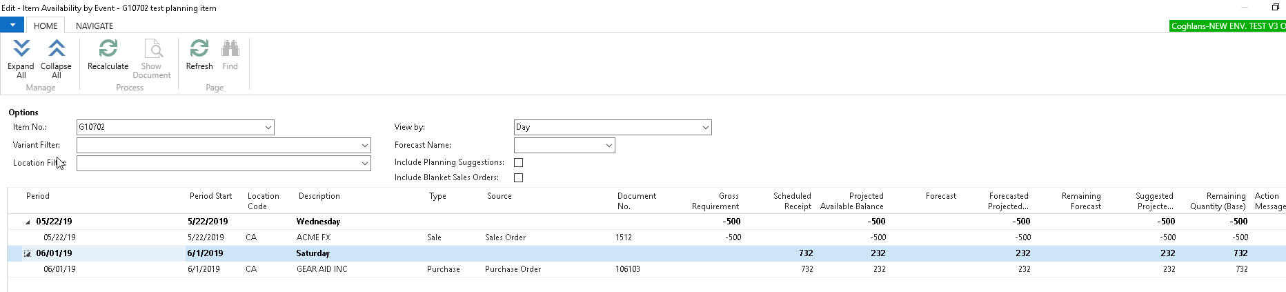 However, Nav is still looking at the expected receipt date.Ā If I enter demand for May, Nav is telling me that we won’t have stock, even though our planned receipt date is prior.Ā Is there any way to get Nav to evaluate the planned receipt date rather than the expected?——————————