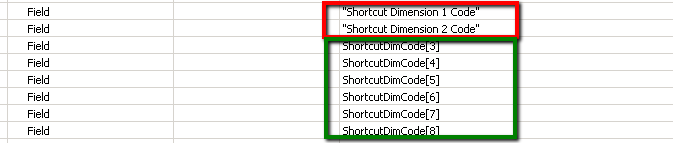 Hi John,Just building on what Paul said — there are two Fields in the Purchase Line table for the Global Dims (i.e. Shortcut Dim 1 and 2) and the other Dimensions you see on the subform page are actually a multi-dimensional variable that is populated by a call to a table function to surface the other shortcut Dims to the page. Below you can see the fields in red and the functions in green: