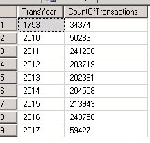 The transaction year also tells a story. We have quite a few EFT Transactions stored here going back to the beginning. I also found EFT Transaction Archive and EFT Transaction Archive Log tables are empty. Why? It’s clear they were created for a reason, so why aren’t we archiving old EFT Transaction data? I believe we can improve the SQL performance on this table dramatically if we simply archive some of the old EFT Transactions.