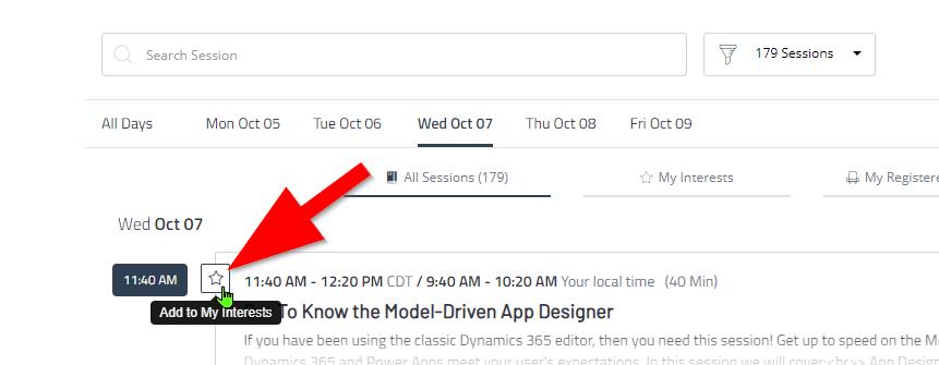 - Note, you will see your selected sessions underĀ My Interest notĀ My Registered SessionsĀ