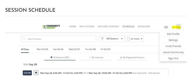 - From here you will be able to browse sessions and edit/create your schedule for Summit North America
