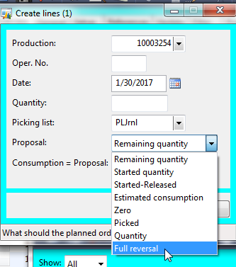 The pick lists have already been posted so I can’t zero out the consumption and ‘End’ it.