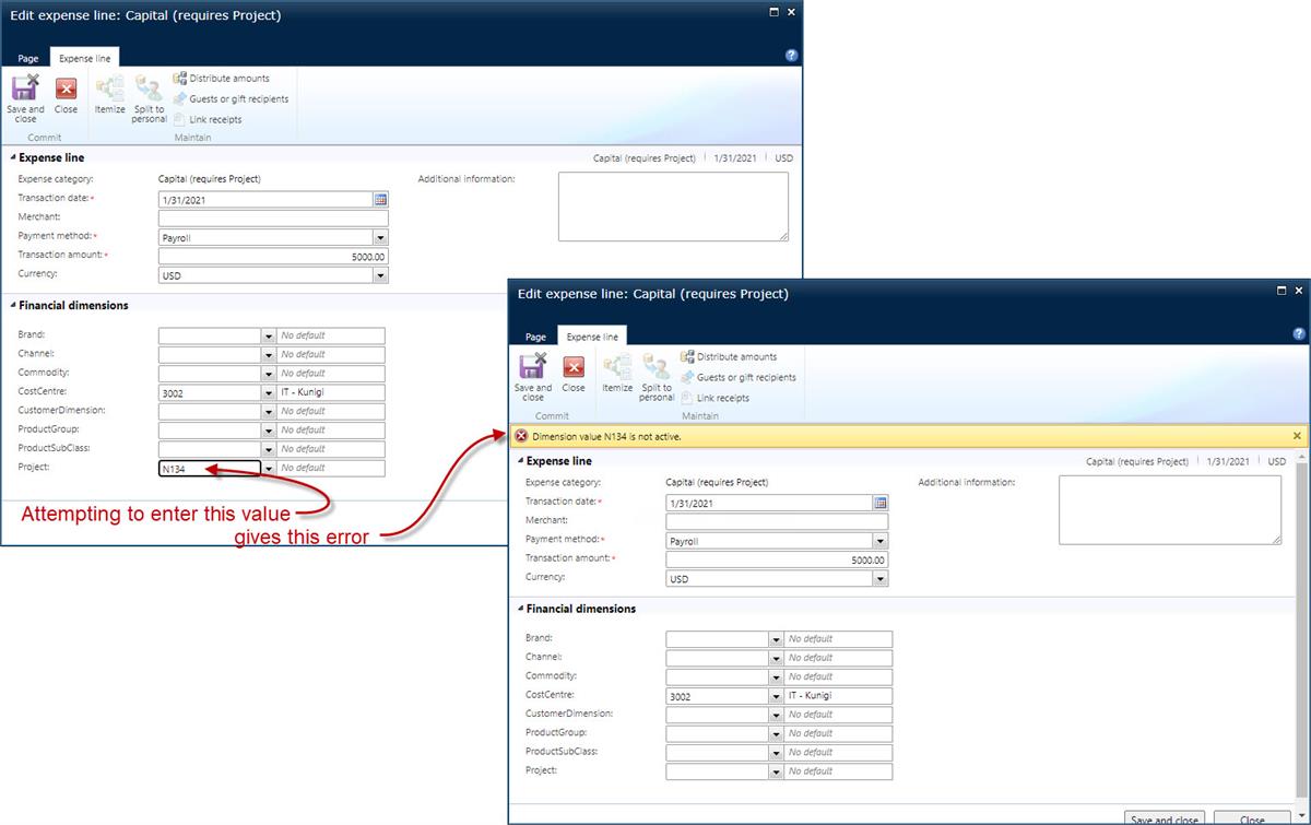 Expense report error: “Dimension value XXX is not active.” (AX 2012)