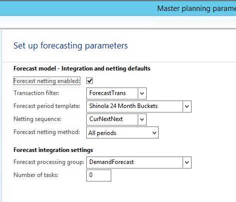 Hi Deanna, I dont see the Forecast netting parameters you have in Forecast models or Master planning parameters and have never seen them before. Are you using a third party solution or add-on product that sits on top of Master planning? This does not appear to be standard AX2012 functionality it is referring to.