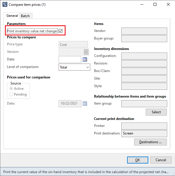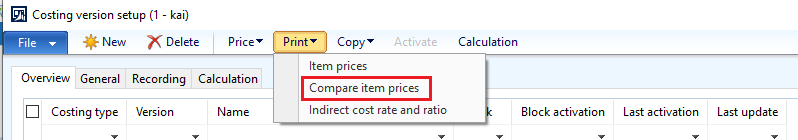 Select the costing version that holds the pending costs.Ā Select Print, and then Compare item prices
