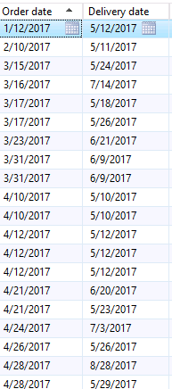 Here’s another example, the order date is the past and the delivery date was yesterday. Why would this order still be here? Also, the action is saying to advance to a date in 2016. Am I missing something?