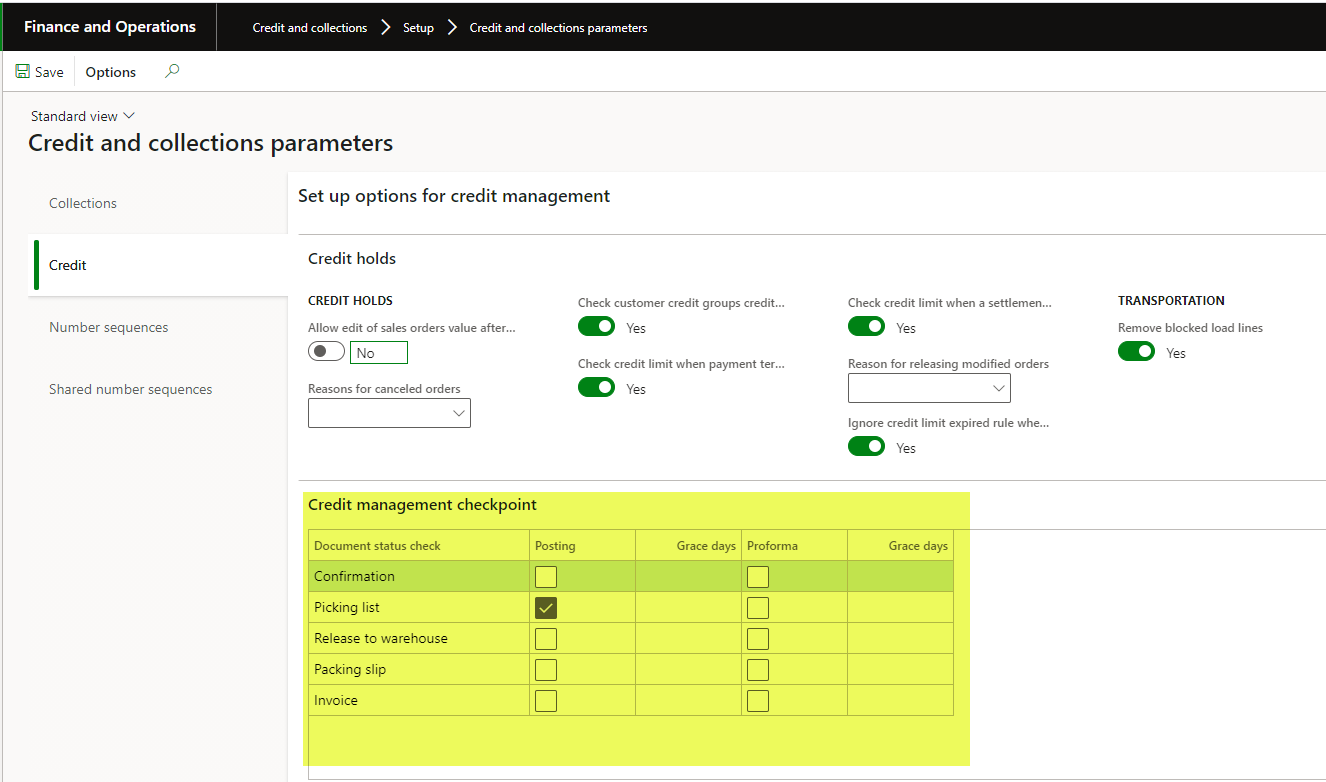 In the Credit and Collections module, navigate to Credit and Collections ParametersCredit tab.Ā There you will see Credit Management Checkpoints which will stop the process based on the customers credit limit.Ā We are in the process of upgrading to D365 and have been testing this feature.Ā We believe we are having an issue with the Release to Warehouse checkpoint, however.Ā If you test this, I’d be interested in your results.Ā Right now, when we check Release to Warehouse, orders which should be stopped are not being stopped.