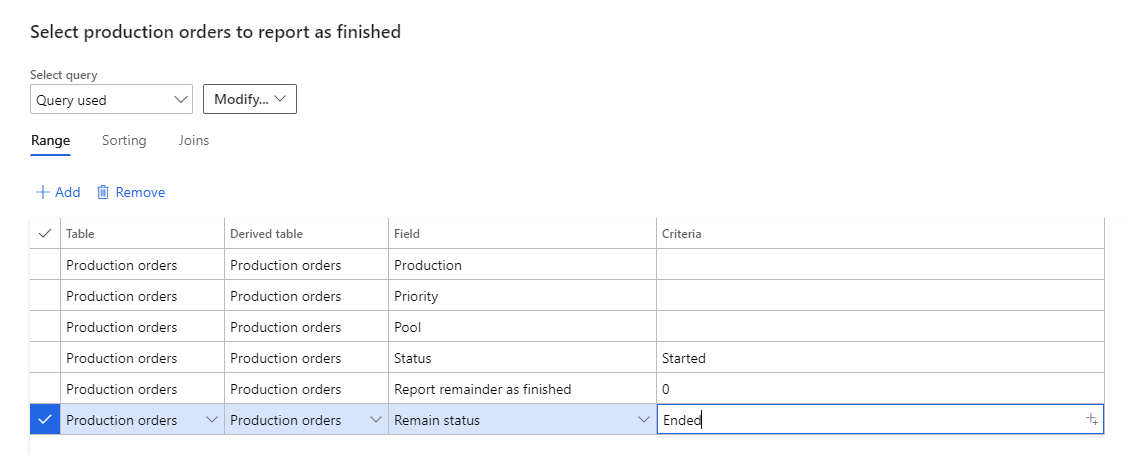 Have a periodic job running (Production Control -> Periodic-> Production order status update -> report as finished for all production orders in status Started, with report remainder as finished qty = 0, with remain status at Ended.Ā Ā