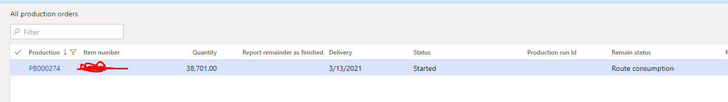 And now you have a production order that looks like this, you’ve received in inventory all 38,701: