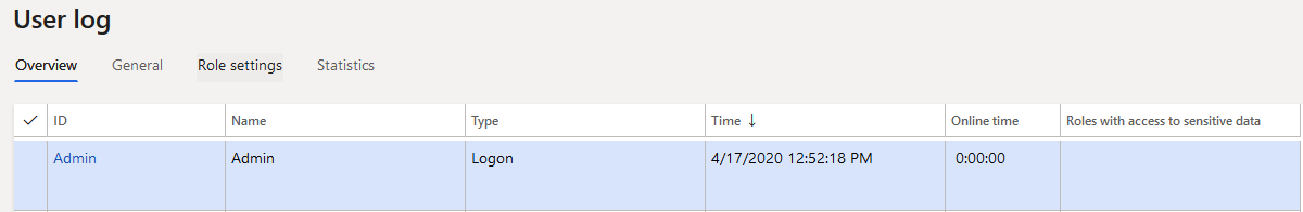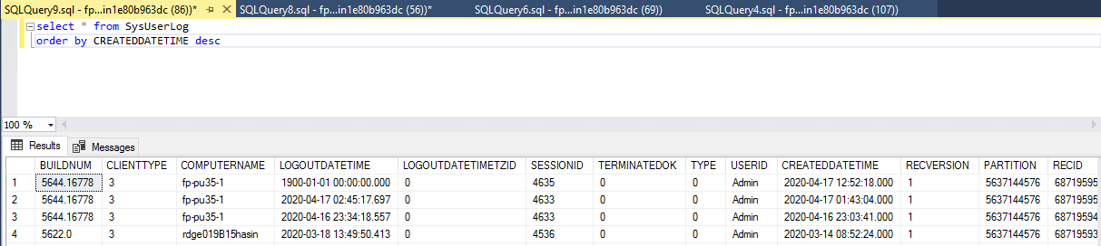 In the database, I can see this user has a LogOutDateTime set as DateTime.min() value in X++ (01-01-1900). The logic for this report is that if it sees a minimum datetime value it just sets the time online to default of 0:00:00.