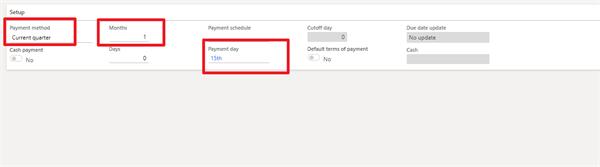 ?I tried reviewing some old posts to see if I could find my issue but must not have hit the right line of discussion…Our company pays licensing fees for the use of multiple trademarks and logos.Ā The vendors are assigned to a vendor group and we have a batch job that runs monthly to calculate the usage or sale of any and all licensed items, create the accounts payable liability and post invoice journals for the amounts payable.Ā However I cannot seem to get the terms setup correctly to show an actual due date that is based on the 15th day of the month following the end of a calendar quarter.Ā