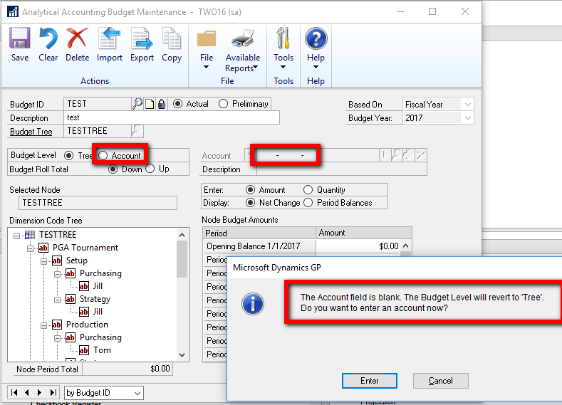 AA Budget to Account Level Setup error