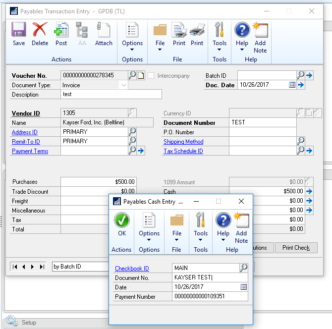 I am a fairly new user to Great Plains and still trying to feel my way around.Ā I went the GPUG summit and heard that when you are processing invoices for payment you could put all invoices in one batch and then create individual batches for the payment types-for example hard checks, online checks and eft payment methods.