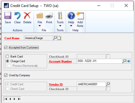 If I understand correctly, you would start by setting your Amex up as a credit card under Microsoft Dynamics GPToolsSetupCompanyCredit Cards. ĀYou can then enter vendor invoices and indicate they were paid by credit card (either in Payables Transaction Entry or through the Select Checks/Payments window – the latter depending on your version of GP).Ā When you do, it will show the invoice as fully paid for the vendor and it will create an open invoice for the Amex vendor. Ā