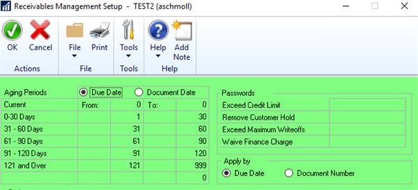 Once you change your Aging periods, be sure to run a Reconcile in AR so that GP moves the transactions to the right buckets for reporting.Ā THIS STEP IS OF VITAL IMPORTANCE