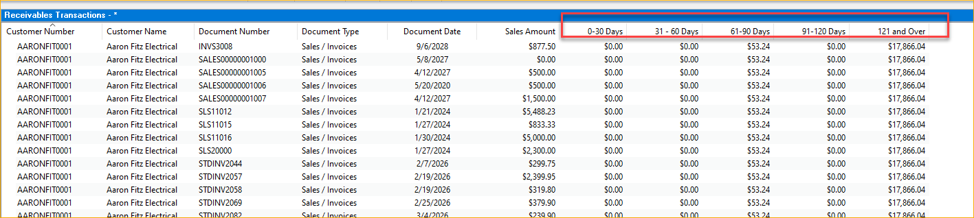 I changed our AR aging buckets under Sales/Setup/Receivables to add a bucket for 121 and over days. I’m looking for a Historical Aged Trial Balance report that will export to excel and will show the new bucket. I don’t want to customize any reports but was looking for one that would incorporate this change. Can you please point me to the right area? I did find one under Sales/Reporting Services Reports but I wasn’t able to get any data to show up so I’m not sure if I’m doing something wrong. Thanks!