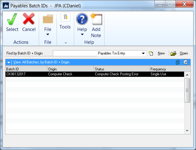 As far as “Have you tried Batch Recovery”, it looked to me like that’s what he’d already tried, but it was still stuck. So now it’s a job for the GP database admin to reset batch statuses and such, right?Steve Erbach,Ā Ā 06-13-2017 03:18 PMI agree that the indication is that they tried Batch Recovery but I wanted to verify that.