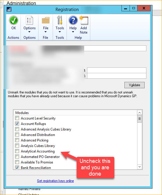 Thanks, wow that is much easier than I anticipated!Ā One follow-up question — does that disable per company, or is that system level??Edit:Ā just looking at it a little further, it indicates ‘It is recommended that you do not unmark modules that you have already used because it can cause problems in Microsoft Dynamics GP’.Ā So to that I should add, AA has been used.Ā Does this change anything?