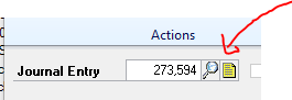 To the right of the journal number is a note field. When opened you can type in notes, and use the paperclip icon to attach documentation.