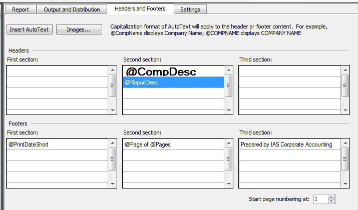 Can someone tell me why my report is showing the letters “IAS” in the middle of each page?Ā Yes, that is the name of our company, but I’m not understanding why it shows up like that?Ā The first row of my Header is correct, but the 2nd Header Row should be the Report Description.Ā