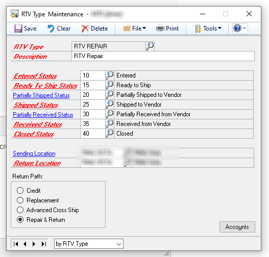 At first view it may depend on how the RTV type you have up there is setup:Ā RTV Repair… check that, but here is a diagram of the life cycle of an RTV, as you can see, much of how it is processed depends on what the type is