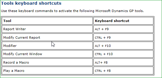 There are a TON of posts (use Google) on Keyboard Shortcuts in GP, but here’s the thing.Ā None of them is a full list.