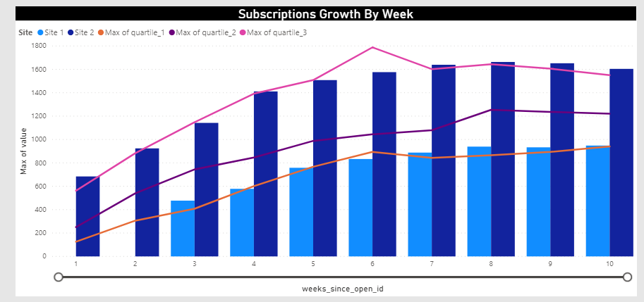 • The bars come from a distinct table of weeks and their corresponding (quartiles 1-3) of the weekly totals *this was calculated in a back end process