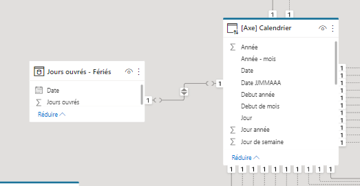 “la colonne Jours ouvrĆ©s – FĆ©riĆ©s'[Jours ouvrĆ©s] n’existe pas ou ne possĆØde aucune relation avec une table disponible dans le contexte actuel.