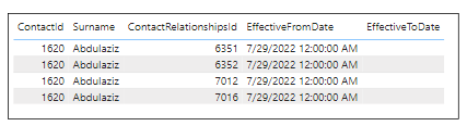 And the same would be true if I ask Power BI, what information is in the ContactRelationship table for my contact, I would get this, which is also logical: