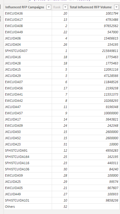 ii.The second issue is when I try to put in the TopN campaigns and average of Others formula into the table, I get an error message.