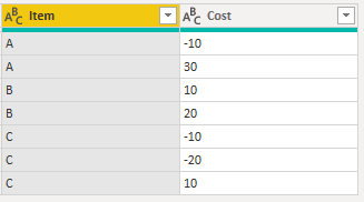 Hi You can use the conditional column to separate the positive and negative items then pivot this column to aggregate the rows. See below with some additional scenarios to handle summing multiple positive or negative values. Result ?See attached pbix.