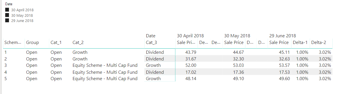 Dear AllNeed an urgent help with an analysis i was doing on mutual funds using power bi. I have given the raw input and expected output. Please note that the rows with unique dates are converted to columns. (Enclosed excel file as well for ready ref)