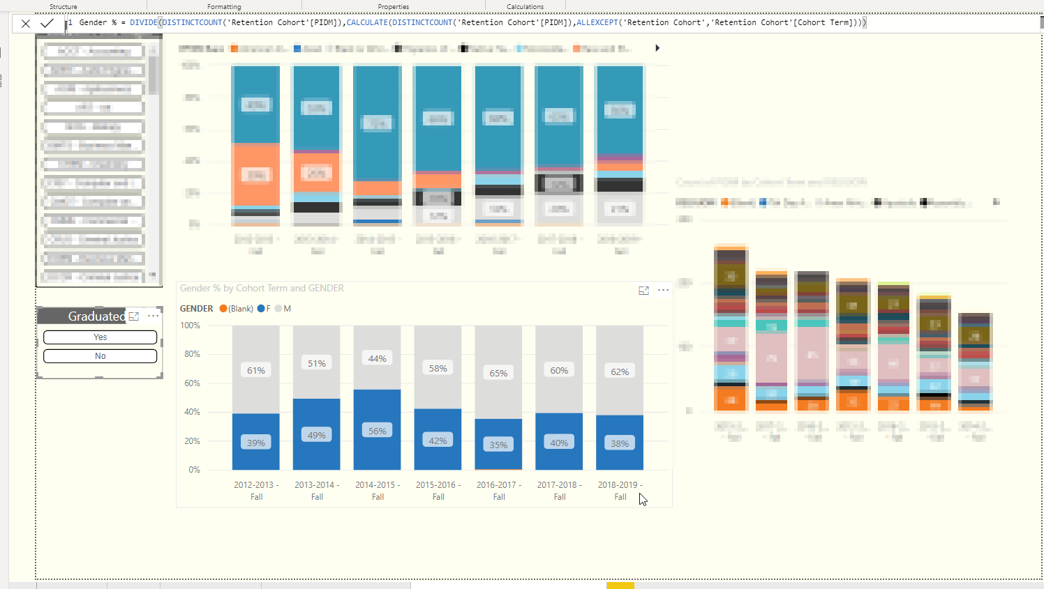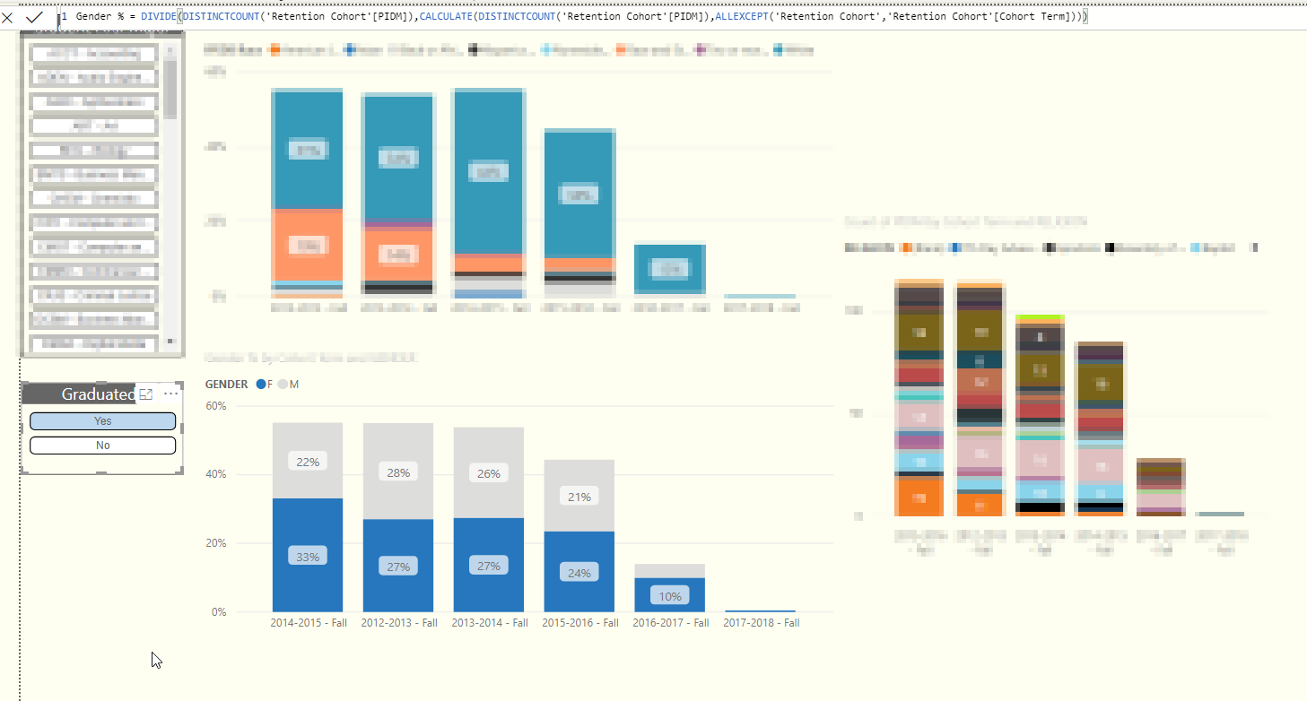 Example: No slicer shows for 2014 61% Male and 39% Female click on Oregon state slicer and it shows 22% Male and 33% Female which clearly does not add 100%