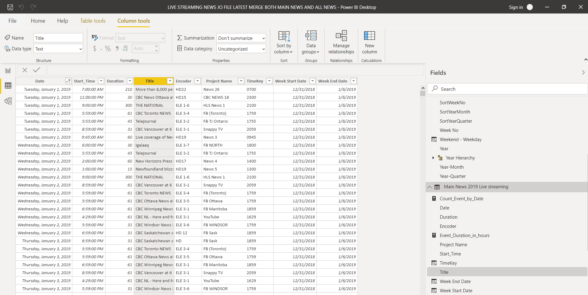 I have unenabled the load on all the monthly files, except the New 2019 Live Stream which is all the monthly report Appended together so they wouldn’t load each time. I guess I’m not sure why adding the Duration2 column would create this issue? Should I remove the first Duration column or will that create a problem too?