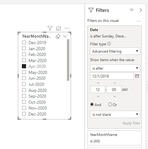 What I would like to do is just hide Anything prior to Dec 2019 on my presentation layer’s drop down.