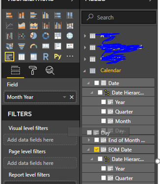 It’s hard to tell what is happening in the screenshot.Ā After turning off auto date/time and marking Calendar as a date table, what happens when you try to drag Date and dropping it in Visual level filters?Another thought, based on the screenshot, it looks like you might have a fairly old version of Power BI Desktop, as indicated by the black/dark color scheme.Ā Maybe the behavior I am experiencing is due to an updated feature in PBI Desktop.Ā This might likely be, as in the newer versions of PBI desktop, there is now a whole Filter Pane, which doesn’t appear to be present in your screenshot.Ā Are you able to update your version of PBI desktop?