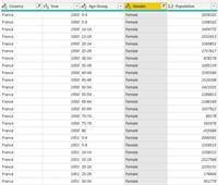 If you just need a visual that shows this, then you can: Create a measure that sums the population. Then put Year, Gender, and/or Country on an axis.
