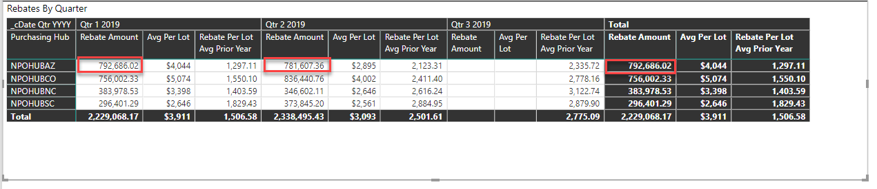_mRebate Amount =CALCULATE(SUM('Rebate Invoices'[Rebate Amount]),FILTER('Rebate Invoices','Rebate Invoices'[_cClose Date Qtr YYYY]<='_Date Time Slicer'[_mDate Qtr YYYY Selected]))