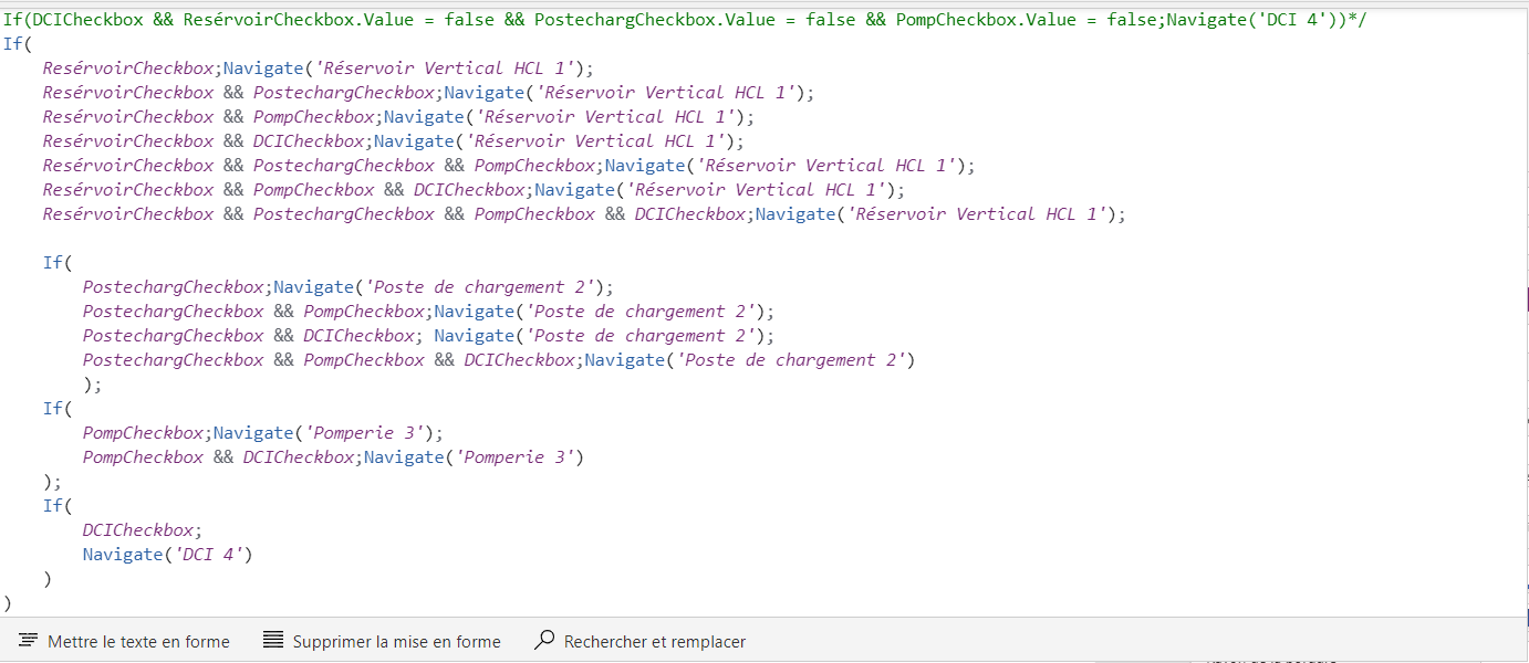 Navigate(LookUp(ColNav;NumeroEcran=VNavig.Actuel;Ecran))In every checkbox oncheck i puted :Ā