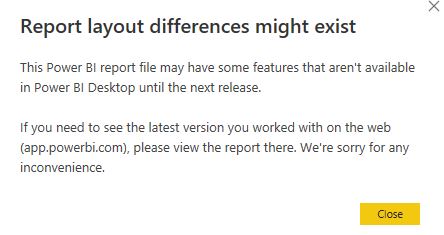 Power BI Desktop (.pbix) error: “Report layout differences might exist”